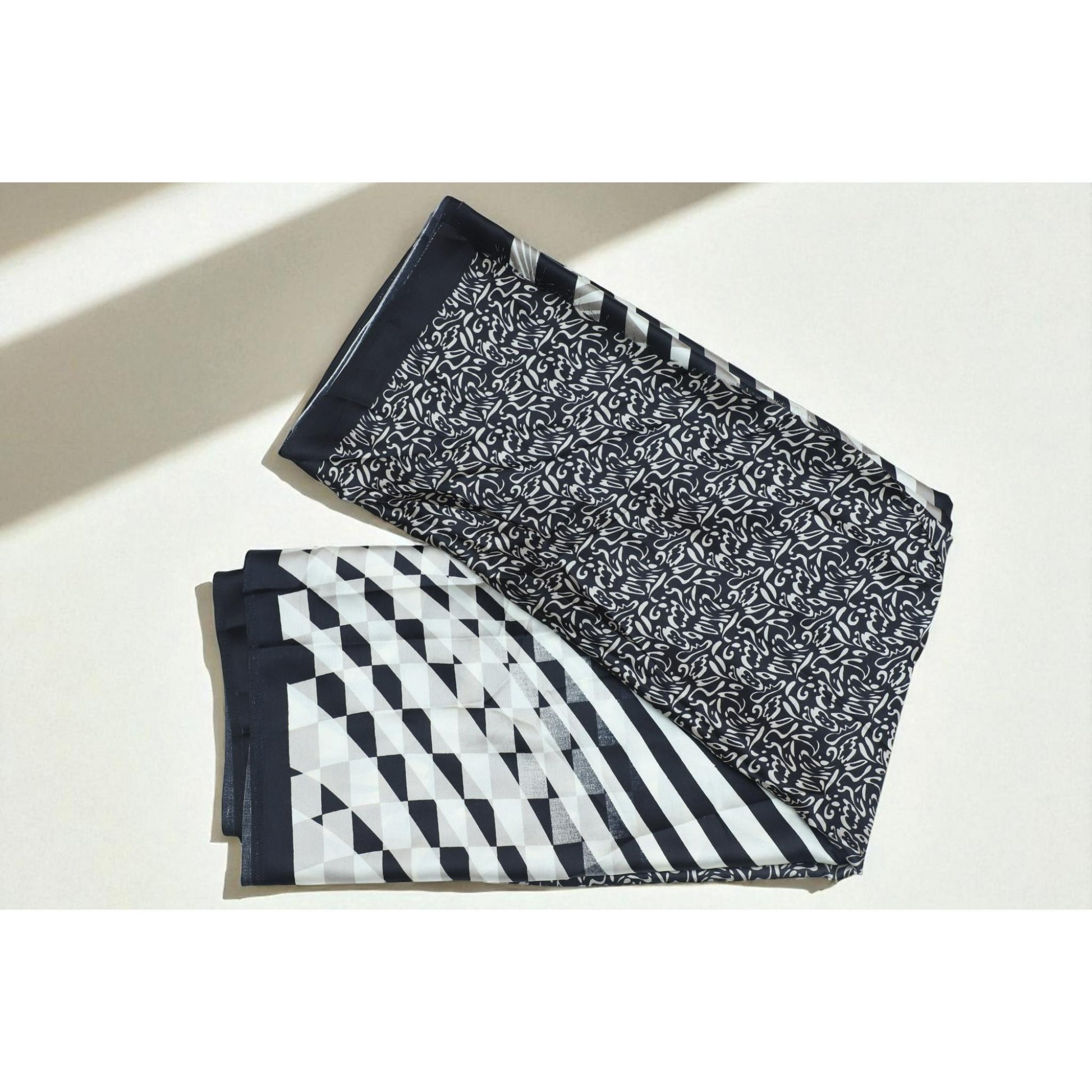 Black White Satin Saree