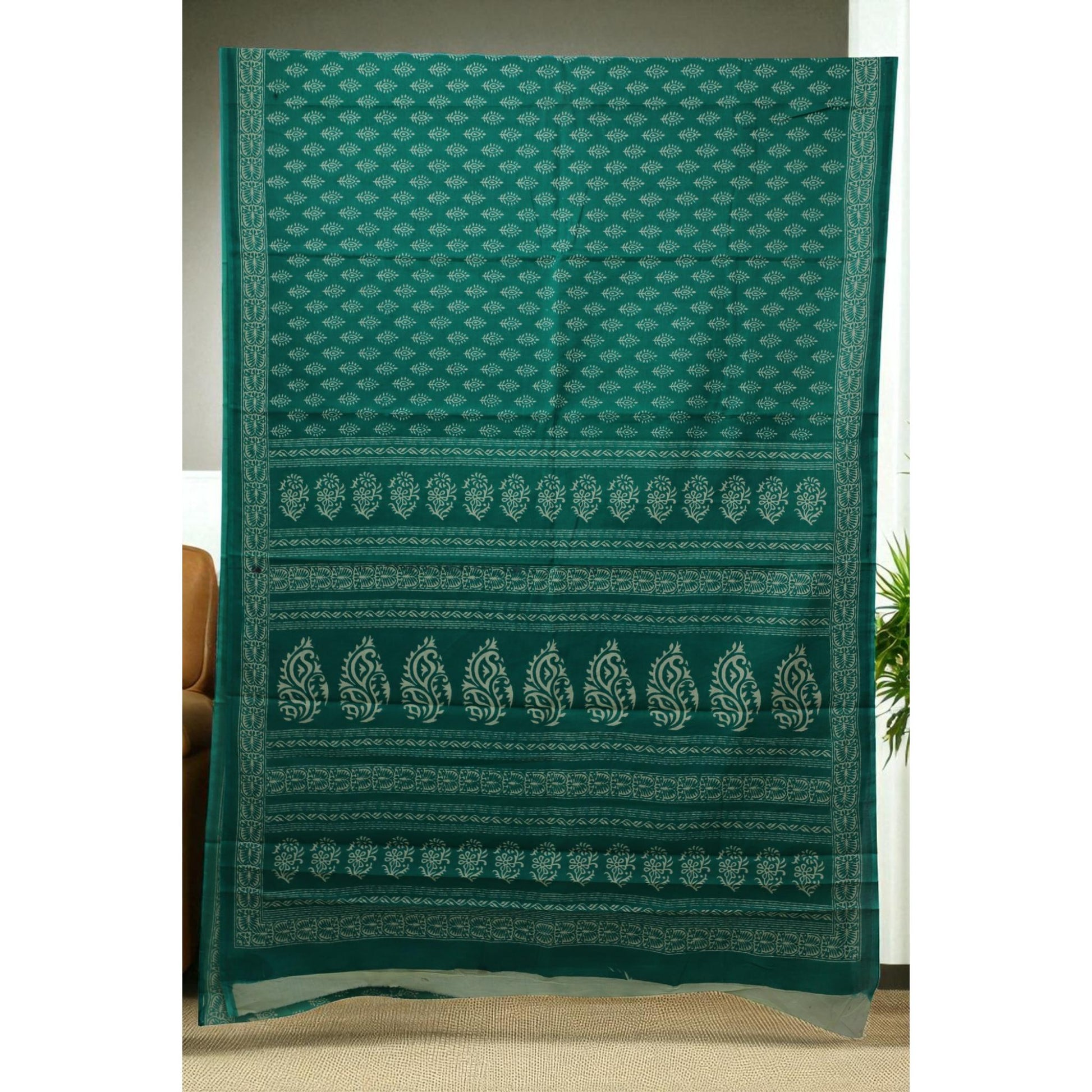 Green Block Print Cotton Saree