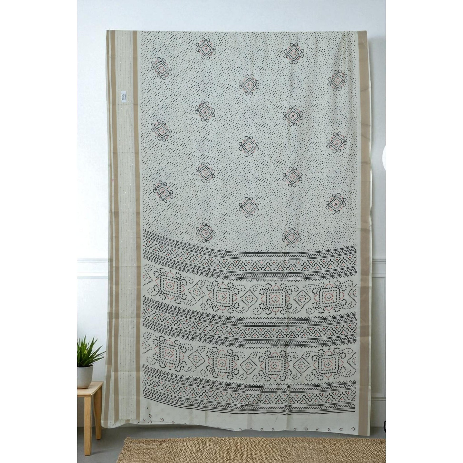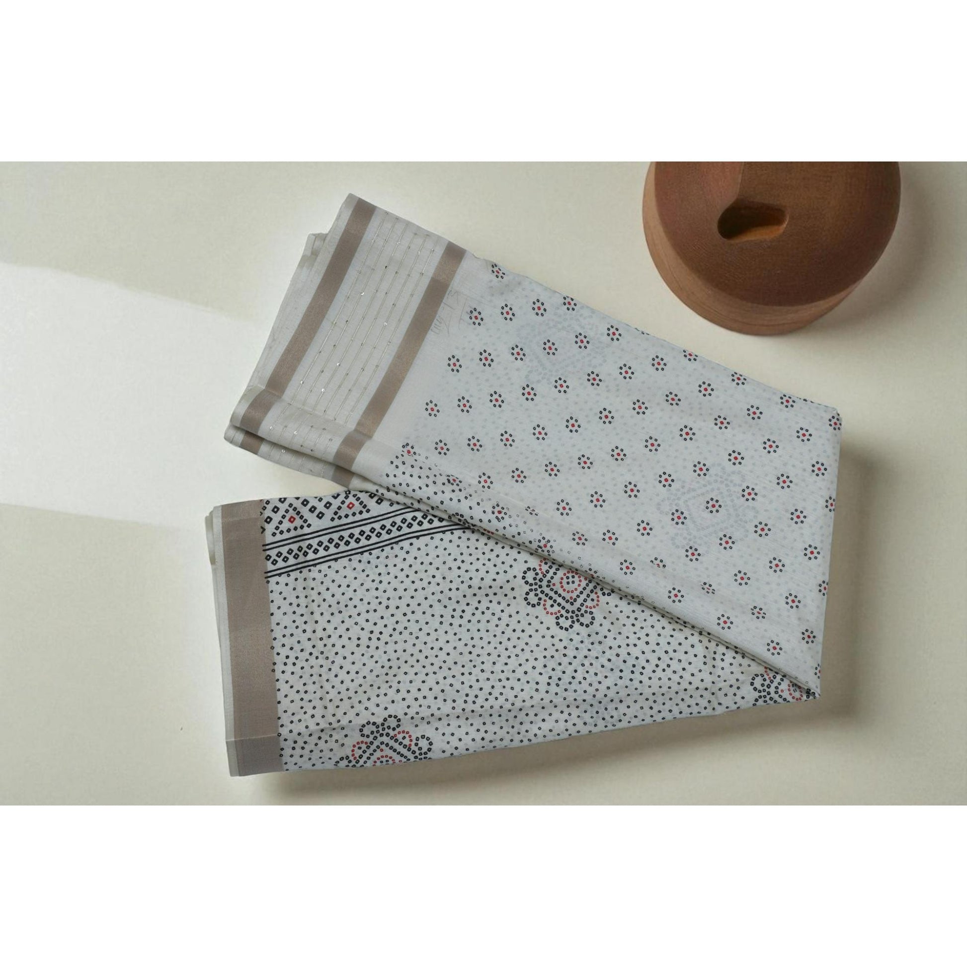 Cream, Black & Red Bhandani Print Dola Silk Saree